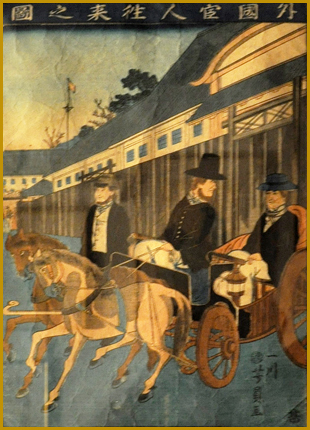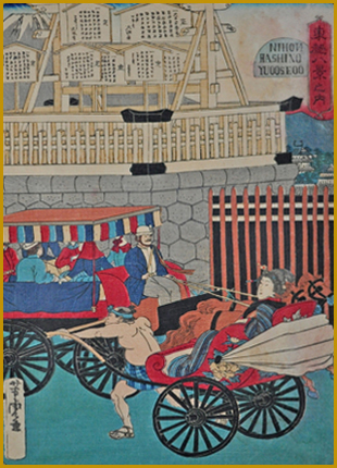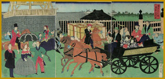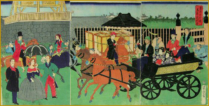 芳虎 「東京日本橋馬車通行團 」明治2年