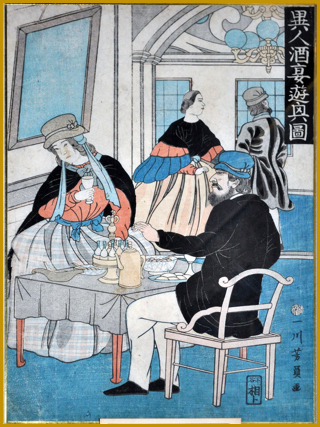 一川芳員「異人酒宴遊興図 部分」文久2年3月