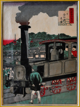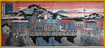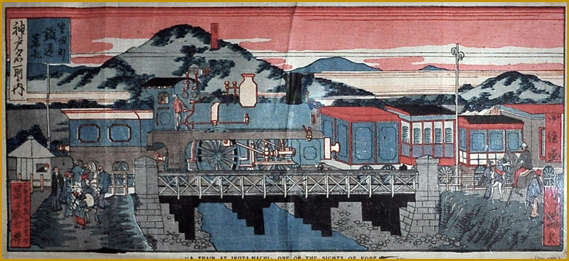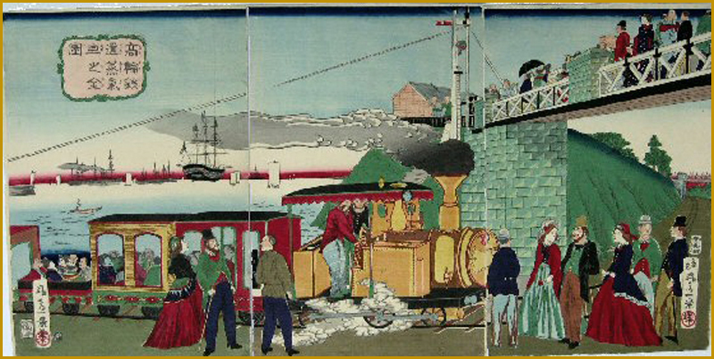 昇斎一景 「高輪鐵道蒸氣轉全圖 」明治5年