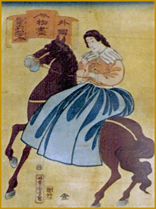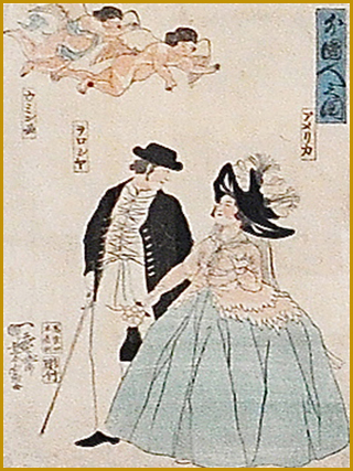 一芸斎芳富「外国人之図 アメリカ ヲロシア ウミン国」文久元年3月