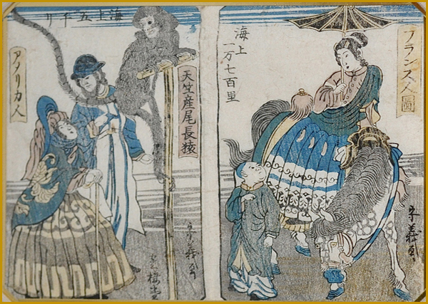 五雲亭貞秀 「橫濱商家異人之圖 天竺產尾長猿 アメリカ人」文久元年1月