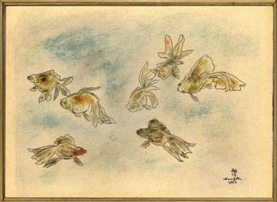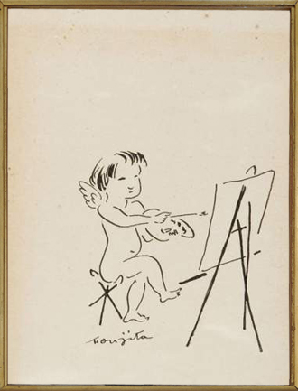 1917: FOUJITA HAS HIS FIRST EXHIBITION IN PARIS. HE BECOMES ONE OF A GROUP OF AVANT-GARDE ARTISTS. HIS FRIENDS AND ACQUAINTANCES INCLUDE: BRAQUE, LEGER, MODIGLIANI, PICASSO, ROUSSEAU, VAN DONGEN AND OTHERS. HE HAS A GENEROUS SPIRIT AND ACTS AS SENSEI AND ADVISOR TO YOUNG, ASPIRING, JAPANESE ARTISTS, RECENTLY MOVED TO PARIS, SUCH AS: BANDO, EBIHARA, HASEGAWA, KOYANAGUI, SUZUKI,UKITA AND OTHERS.