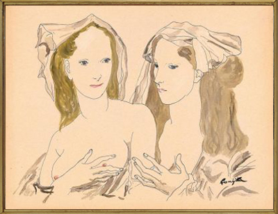 Foujita was a man ahead of his time. He was both Japanese and French. What we like about him is that he embraced all cultures and his many friends were from every background and religion. All this he did without abandoning his own culture, and this shows very beautifully in his masterful work. Early on, Foujita enjoyed enormous celebrity and financial success in Paris. At the age of 39, he was honored with the highest award of the French State, Le Légion D’Honneur, and also in the same year, the Belgian Order of King Leopold from the art-loving Belgians. Appealing to the ever fickle public and making a living as a contemporary artist is never an easy task. Foujita was married five times and quite in keeping with his open view of the world, his first and last wives were Japanese whereas the three in between were French. We hope you enjoy his pictures as we do.