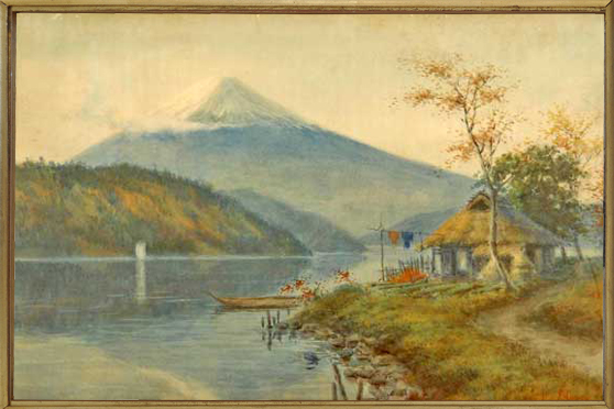 Cottage on a Lake beneath Mt. Fuji by K. Tosa