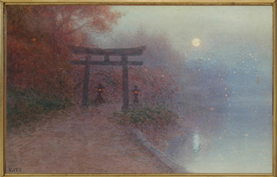 1892: ITO, AGE 25, RETURNS TO KYOTO AND TAKES AN ACTIVE PART IN THE KYOTO ART WORLD. ITO HELPS TO ORGANIZE THE KANSAI ART ACADEMY AND, LATER ON, BECOMES ITS DIRECTOR. HIS PAINTINGS AT THE FIRST BUNTEN RECEIVE SPECIAL AND FAVOURABLE RECOGNITION. ITO IS A COMPETENT PAINTER WHO COMBINES WESTERN AND TRADITIONAL SENSIBILITES TO PRODUCE BEAUTIFUL PAINTINGS THAT EXPLORE MOOD AND ENVIRONMENT WITH AN IMPRESSIONISTIC POINT OF VIEW.
