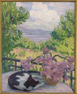 Sei Koyanagui was born in Hokkaido, in Northern Japan. After studying in Tokyo, he moved to Paris after the end of the hostilities of WW1. There he lived and painted, as many artists of the time, in Montmartre. Foujita was the pioneer Japanese artist in Paris; Koyanagui knew him and worked with him. This was a very exciting time in the Paris art scene. Koyanagui was also very friendly with Picasso but retained his own independent and poetic style. What was unusual in his experience is that Koyanagui was recognized early on as a talent and was successful shortly after he first arrived in Europe. His works were exhibited at the Salon des Independants, the Salon d’Automne and the Salon des Tuileries. In 1929 at the young age of 33, Koyanagui was invited to present his work at a dedicated exhibition at Le Petit Palais. Koyanagui traveled extensively in Western Europe. His works were exhibited at London’s Royal Academy and at the Kunstaustelling in Munich, Germany. We like his work very much and feel that it fits perfectly into the atmosphere of the house.