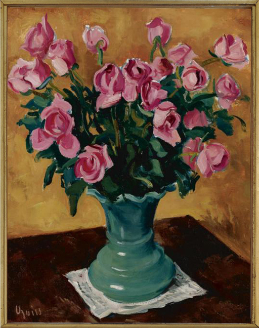 Roses dans un vase couleur celadon by Takanori Oguiss