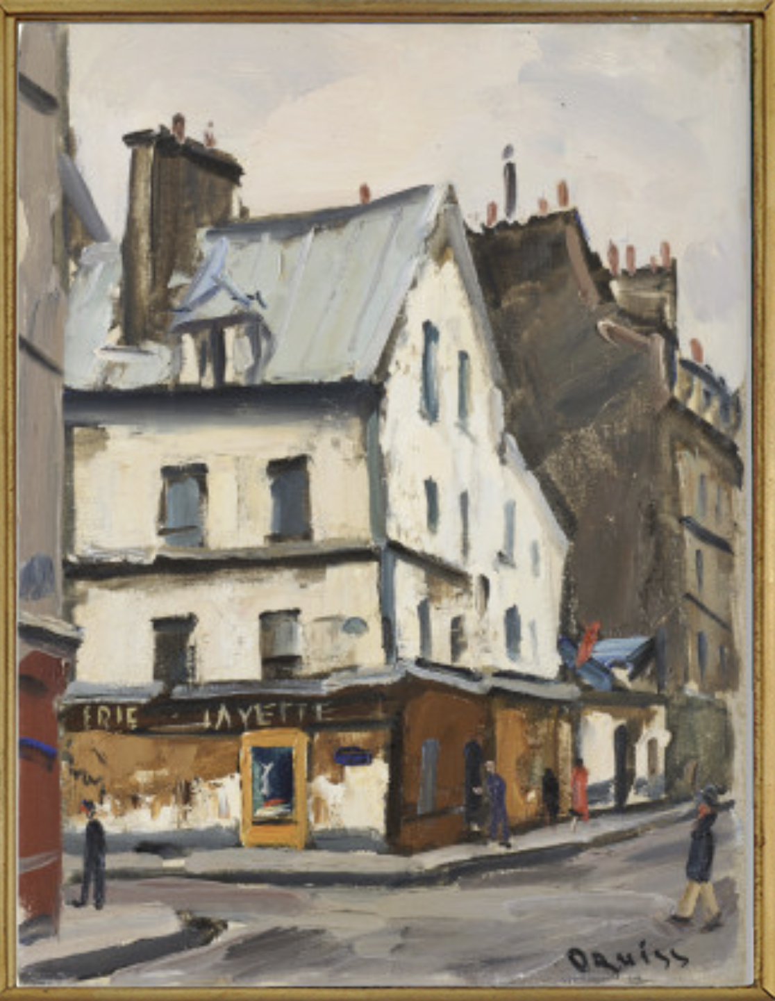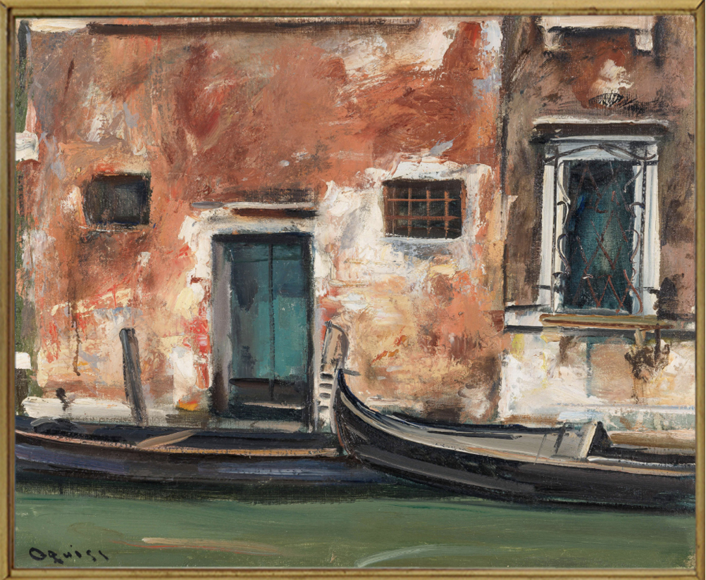 Ce tableau a été offert par l’artiste à M. Gilbert Pétridès, propriétaire de galerie et fils du guitariste Paul Pétridès, établi avenue Matignon à Paris. M. Oguiss a présenté une exposition à la Galerie Paul Pétridès consacrée à Paris en 1970, puis une autre, dédiée à Venise, en 1972. La dédicace adressée à M. Gilbert Pétridès est ainsi libellée : « Pour Gilbert Pétridès avec mes compliments, 1972 ».