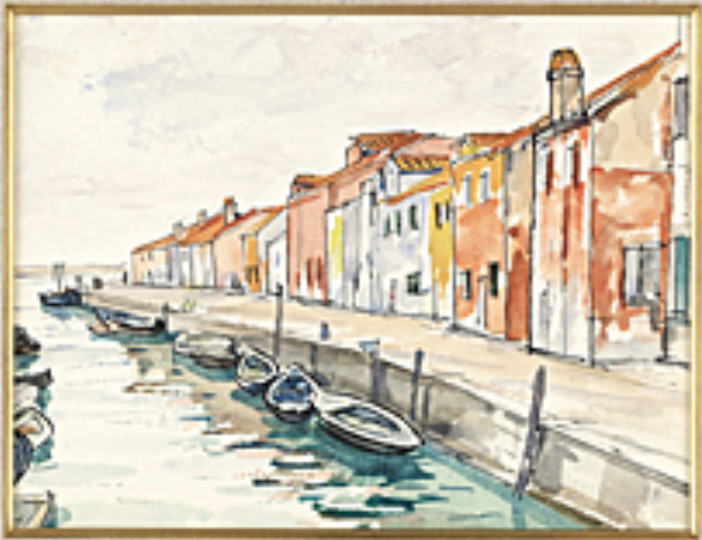 Burano, Venice by Takanori Oguiss 1967 Watercolor. (#JMOT15)