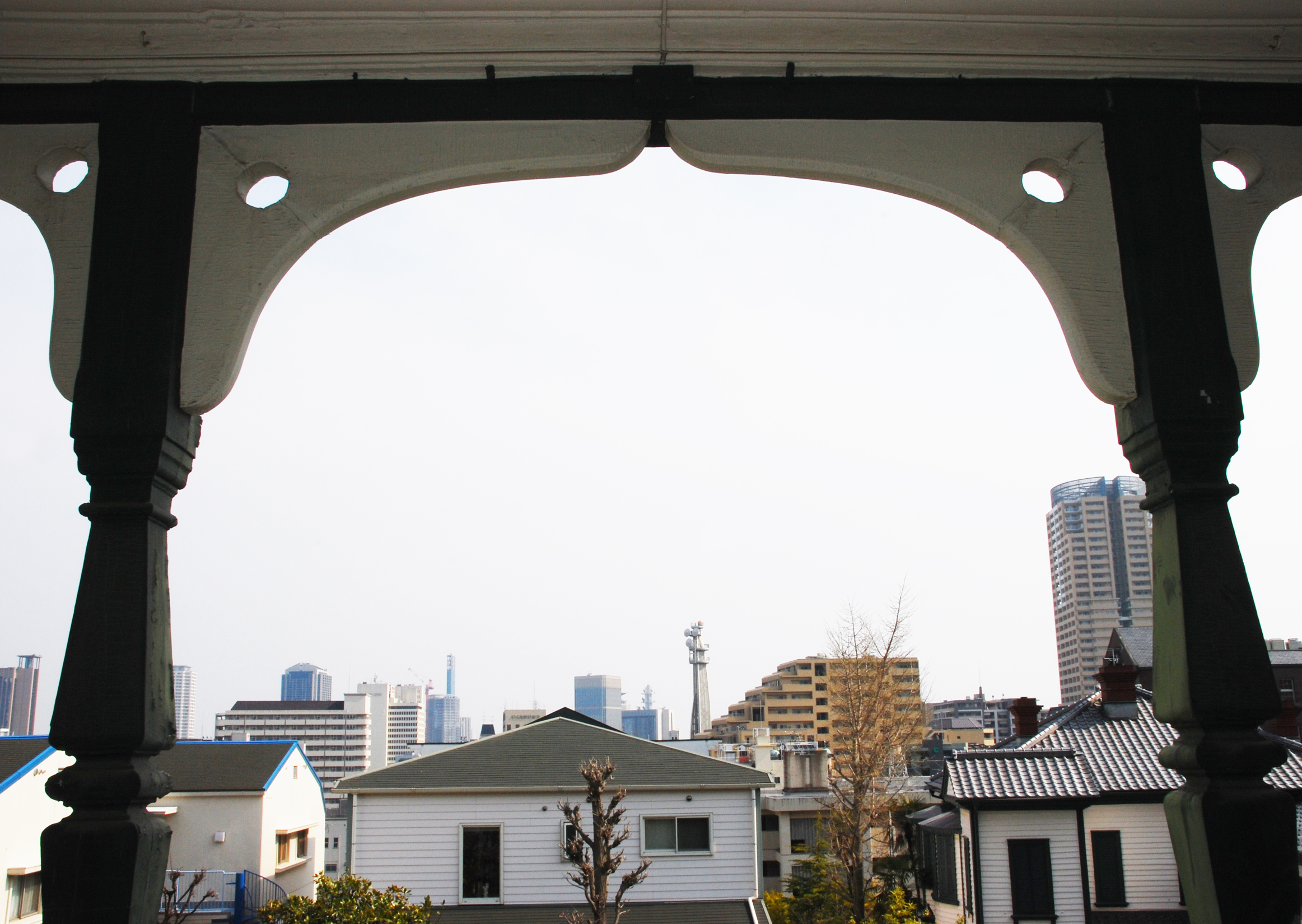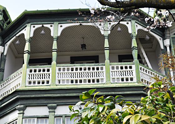 ベランダは優雅なアーチで縁取られ、イスラム調のデザインの角柱で支えられています。そこに腰かけて、ほんの1ブロック先にある神戸モスクから聞こえる美しい礼拝の声を聞いていると、とてもいい気持ちになります。