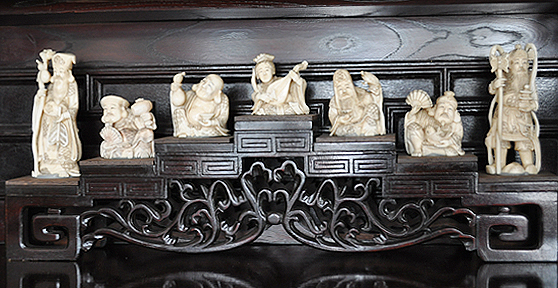 シュウエケ家と金子家は、強く象牙の採集に反対しています。展示された象牙は全てアンティークであり、象牙の採集が象を絶滅へと追いやる意識が一般に芽生える前に収集されたものです。工芸作家が日本で象牙を刻んでいたのは400年前に遡ります。これらは過去に興味深い歴史を持ちながらも、もはや将来はない工芸品の実例です。
